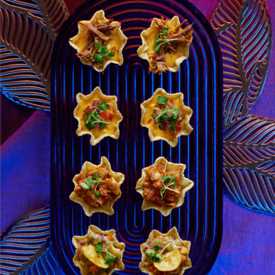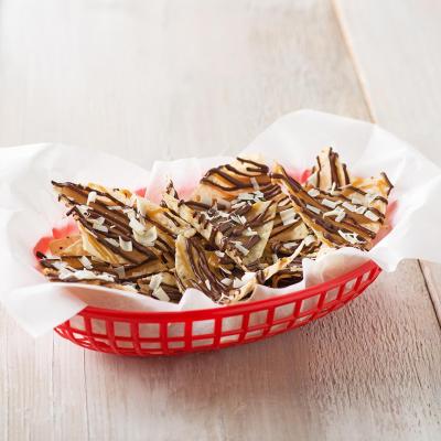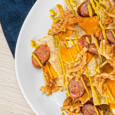 - On pizza pan, layer TOSTITOS® Cantina® Thin & Crispy Chips, onions and peppers, roast beef and cheese; bake for 2 to 4 minutes until cheese starts to melt.